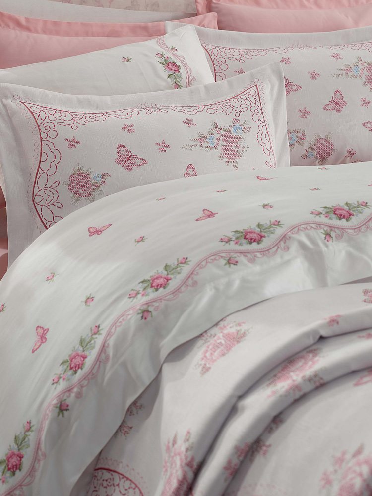 | Farbe und Design | creme, rosarot, Stickerei |